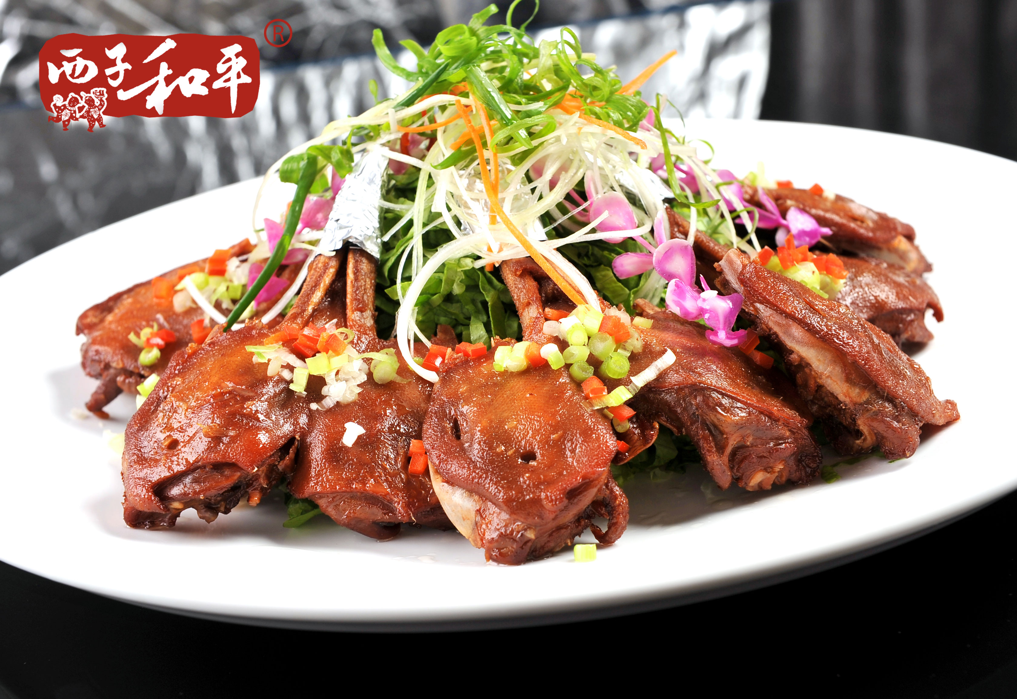 先改刀對開鴨頭,沸水蒸15分鐘左右,下鍋過油1分鐘左右出鍋,再配生姜、大蒜、干辣椒炒香下鍋鴨頭,撒少許椒鹽,出鍋擺盤