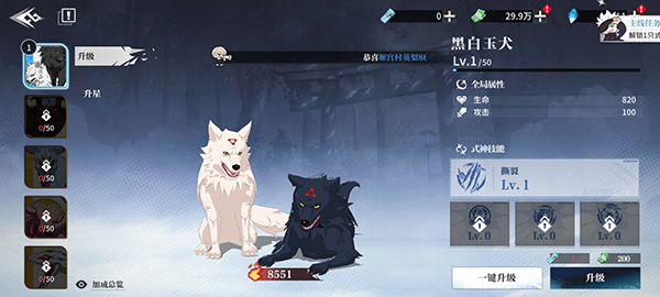 2、式神升級需要消耗咒術靈水,升級后可大幅提升傷害,并提升全局屬性。