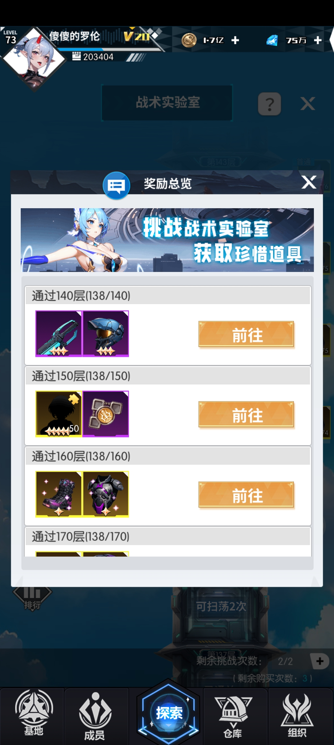 系統(tǒng)介紹:首通每層實(shí)驗(yàn)室均可獲得元石、金幣及英雄精英,通過達(dá)標(biāo)層數(shù)可獲得額外達(dá)標(biāo)獎(jiǎng)勵(lì)。